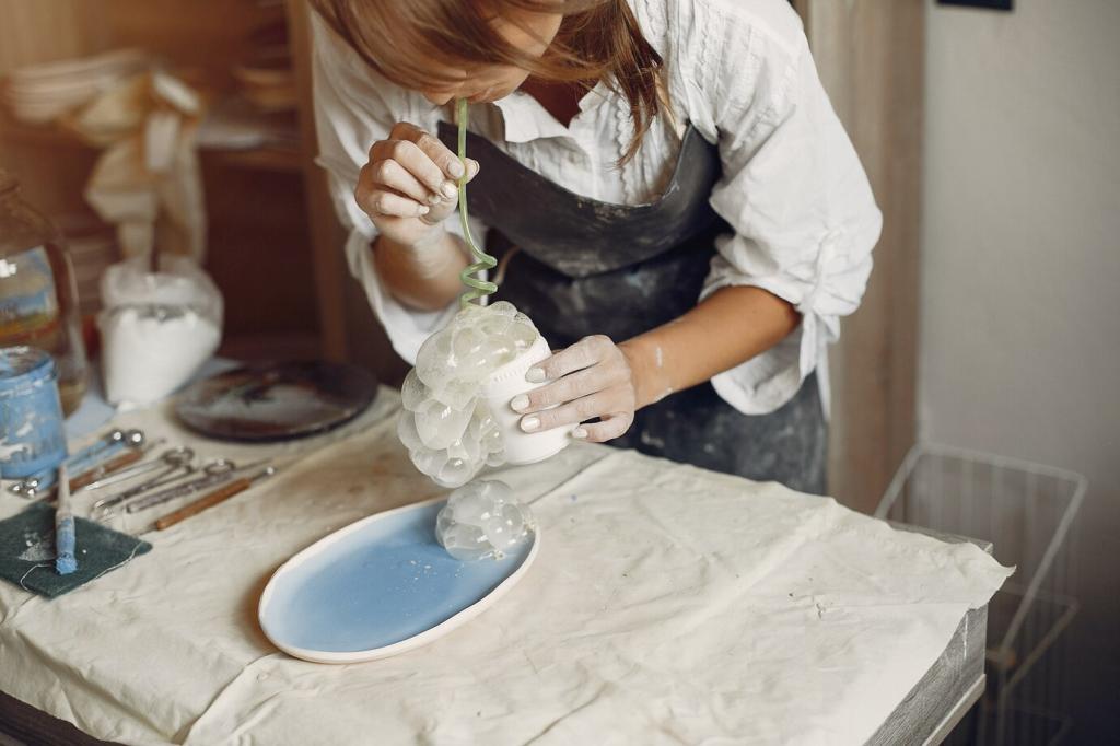 Drehe die Form in kleinen Schritten, halte Daumen und Finger locker, spüre den Widerstand. Gleichmäßige Wandstärke verhindert Spannungen. Den Rand regelmäßig komprimieren, damit keine Mikrorisse entstehen. Welche Übung hilft dir, das Feingefühl zu schärfen? Schreib uns.