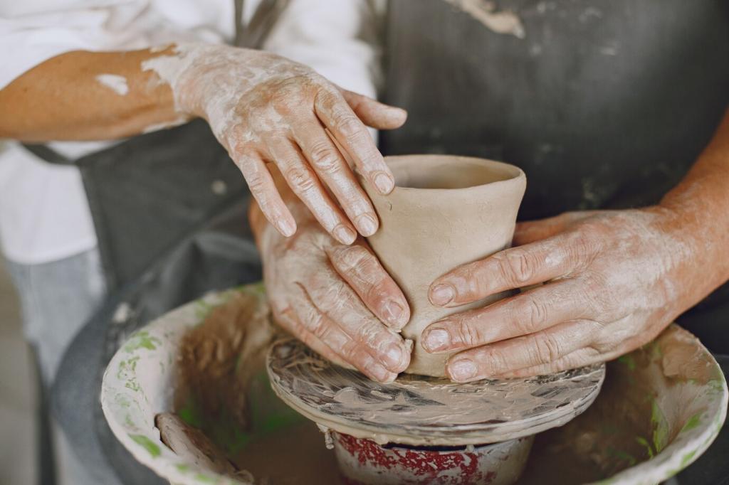 Im Oxidationsbrand wirken Farben reiner und vorhersehbarer, während Reduktion im Gasofen Eisen zu Celadon grün färben oder Kupfer zu tiefem Rot wandeln kann. Beobachte Flammen, Kegel und Abkühlkurve, damit deine Wohnaccessoires ihre gewünschte Stimmung zeigen. Diskutiere deine Ofenerfahrungen mit der Community.
