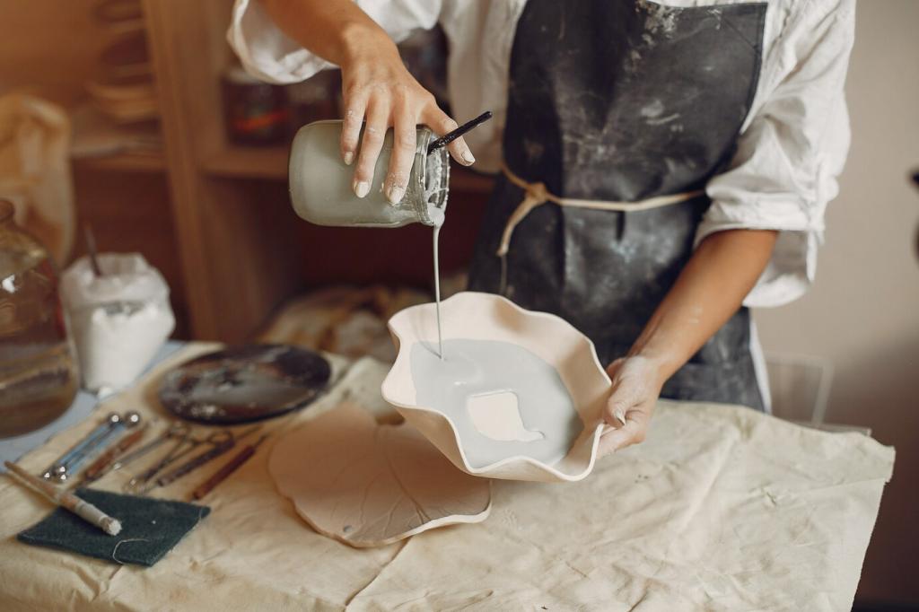 Salzschälchen, Teelichthalter oder Obstschalen in Pinch-Formen sind nützlich und persönlich. Achte auf stabile Kanten und passende Glasuren. Ein Set aus ähnlichen, nicht identischen Gefäßen wirkt lebendig. Verrate, welche Kleinigkeiten deinen Alltag tatsächlich praktischer machen.